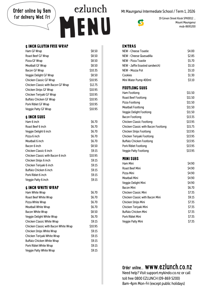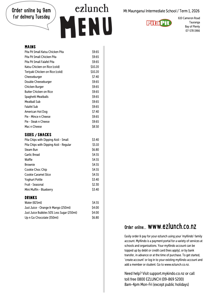 Lunch Orders at Mount Maunganui Intermediate