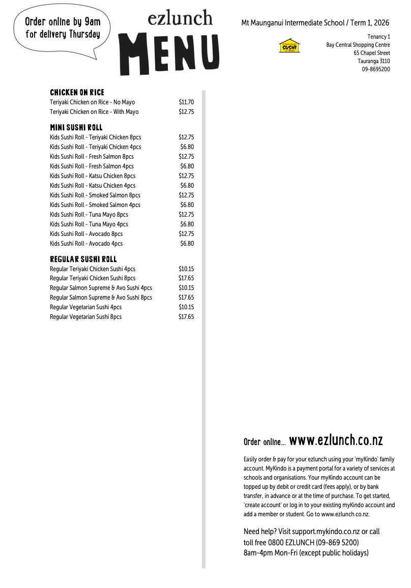 To get started, please visit the ezlunch website at ezlunch.co.nz or use the myKindo app. You only need to register your family once and add credit to your account. After that, the ordering process is quick and simple.